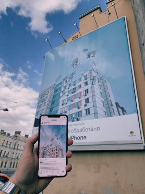 Компания Apple периодически демонстрирует возможности камеры iPhone и приложений для iOS на реальных примерах снимков пользователей, размещая их на больших поверхностях в мировых столицах. Любой снимок из сети, снятый на iPhone, может привлечь внимание своим качеством и художественной ценностью, и в последствии появиться на огромных билбордах по всему миру с целью вдохновить других айфонографов на творчество.
